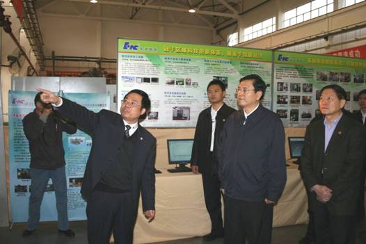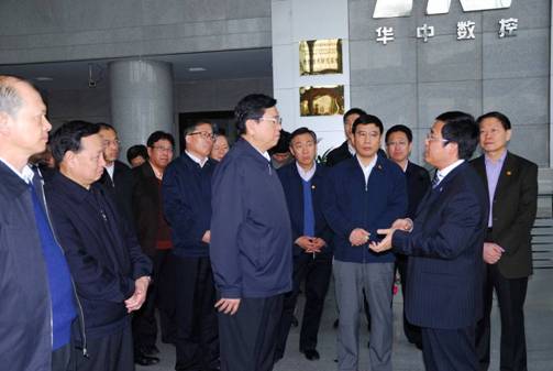 在华中数控展示厅,华中科技大学国家数控系统工程技术研究中心主任、华中数控董事长陈吉红,首先汇报了企业发展历程,介绍了华中数控“三级跳”发展历程,和“十一五”期间实现“第四级跳”:做大做强,实现与国外企业“三足鼎立”的目标。张德江副总理参观了华中数控最新研制的高档数控系统产品:HNC-28总线式数控系统、HNC-32现场总线数控系统和HNC-210系列数控系统,仔细询问了高档数控系统的推广应用情况。目前,华中数控系统已经有80余台五轴联动数控系统在航空、船舶、汽车、电力等行业的重要工业用户中成功应用,是目前国内唯一获得批量应用的国产高档数控系统。其中,与武汉重型机床厂合作生产的七轴五联动车铣复合加工中心,打破国外技术封锁,可以加工8米舰船螺旋桨,目前已经在镇江某船舶企业投入使用;与桂林机床厂合作生产的五轴联动龙门铣床,在我国大型航空制造企业已成功应用三年多,并且是国防科工委表彰的14台优质国产数控设备中唯一一台全国产化的数控机床;产、学、研、用联合研制出九轴六联动数控砂带磨TX-6,可用于大型叶片磨削抛光、机载外挂装置型面磨削抛光、风力发电桨叶型面加工等。