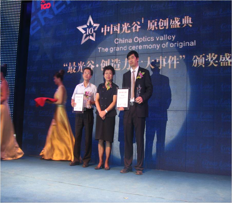 2011年9月9日晚,由楚天都市报主办的“最光谷·创造力十大事件”颁奖盛典在光谷阳光100大湖第隆重举行,武汉市副市长刘顺妮向华中数控公司总经理向华颁发了奖牌和证书。