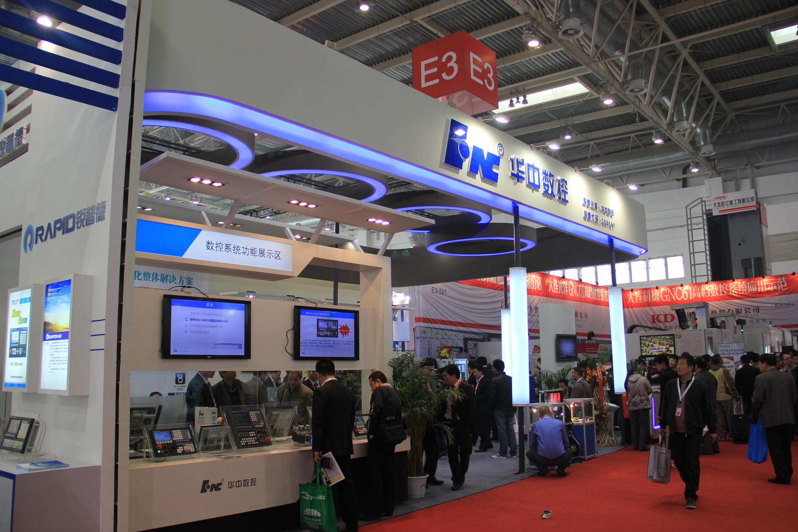 Imotion、立体仓库运动控制系统、注塑机系统、专机系统DNC,展示华中数控在数控一代领域的成果。