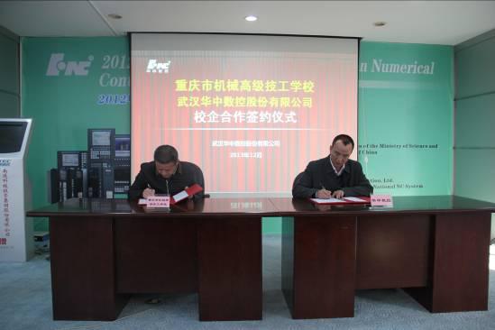 2012年12月2日,重庆市机械高级技工学校校长廖建一行来到华中数控,与公司副总裁熊清平、销售部长李力等就双方校企合作事宜进行了座谈协商,并签订了相关协议。