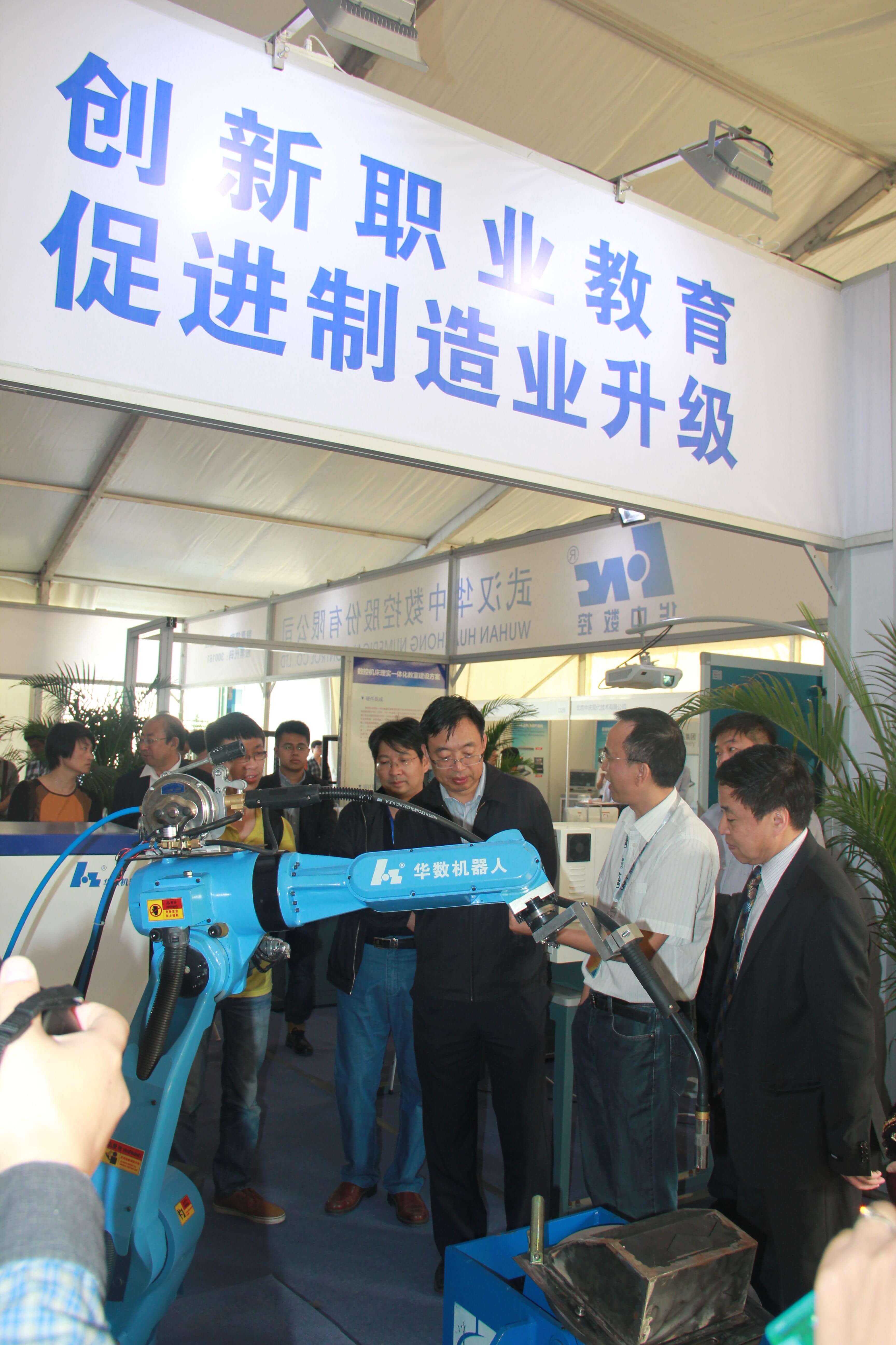 期间,教育部在展会同一时间和地点举办“2014年创新发展高等职业教育暨全国高职高专校长联席会议年会”,并且组织开展了中高职机电一体化专业、高职数控技术专业、新能源专业等第一批职教装备技术教学仪器设备标准的培训。教育部职业教育与成人教育司司长葛道凯、发展规划司副司长陈锋等领导参加了以上活动,并且到华中数控展台视察。华中数控作为全国职教装备技术教学仪器设备标准委员会单位,参加了有关会议,并且向有关专家和代表汇报华中数控创新型教育产品和服务。
