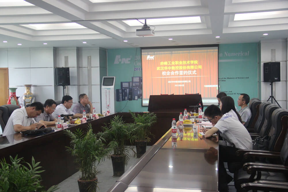 2015年6月4日,赤峰工业职业技术学院霍书记一行来访,与武汉华中数控股份有限公司副总裁熊清平等领导举行校企合作交流会。双方就深化校企合作关系,实现深度合作达成一致,并且签订了相关项目合作协议。