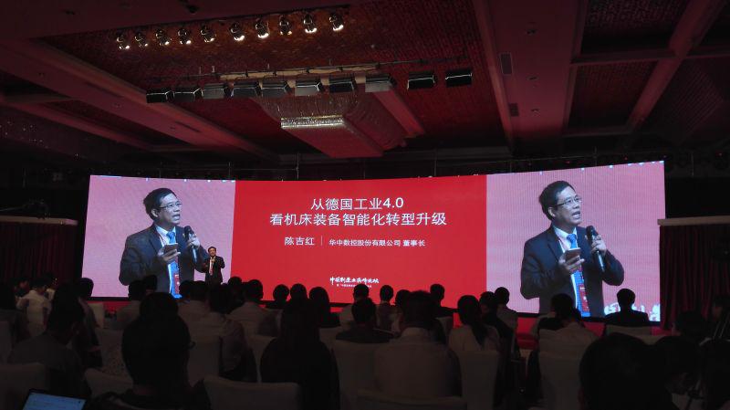 武汉华中数控股份有限公司董事长陈吉红教授作题为《从德国工业4.0看机床装备智能化转型升级》的主题演讲。陈吉红董事长回顾了近年来机床设备智能化转型升级的历史进程,对智能制造行业的历史、现状、未来走势进行了精辟的分析和预测。同时,陈总的报告简明扼要、生动、形象,获得了与会代表的好评。会后,湖北卫视、东方卫视还特别采访了陈吉红董事长。