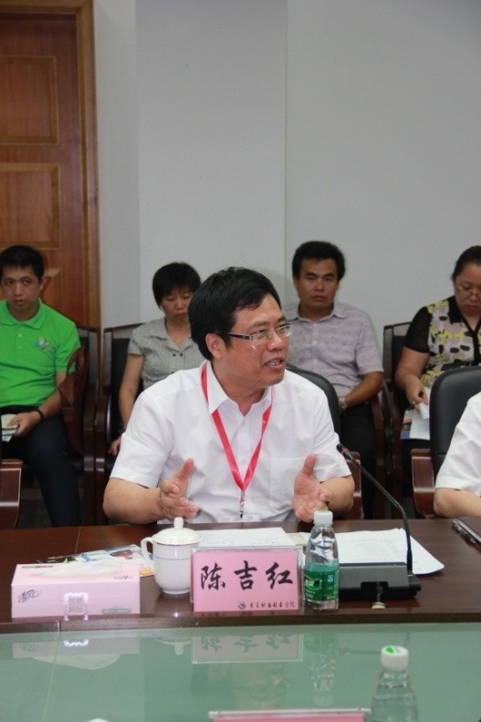下午,在东莞职业技术学院举行“职业院校智能制造专业建设与人才培养交流座谈会”。中国工程院院长周济、广东省科技厅厅长黄宁生,东莞市副市长喻丽君、杨晓棠,市政府秘书长邓浩全,市经信局、市科技局、市人力资源局、市教育局等主要领导出席会议。华中数控陈吉红董事长、熊清平副总裁、田茂盛副总裁等领导参加会议。