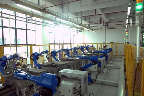 打磨抛光线:采用湿抛模式,单线配置12台机器人。这条全自动“华数机器人”打磨抛光示范生产线,实现了手机零件的放料、取料、打磨、抛光、换砂纸全自动,充分展示华数机器人在3C打磨应用领域的综合技术实力,具有广泛的推广应用前景。这条打磨抛光生产线具有高效、高质、清洁/安全等优势:产能600PCS/小时,相当于12人产能;品质稳定、良品率高达99.8%;无粉尘加工作业。