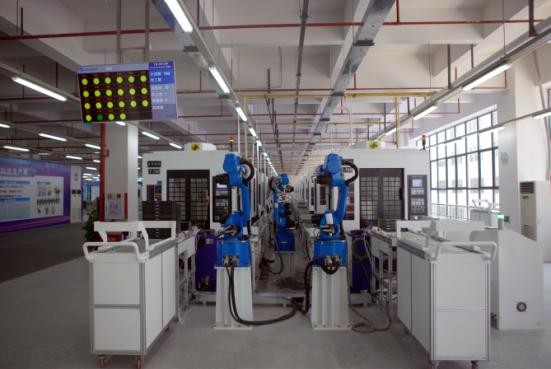 签约会议结束后,各位参会嘉宾来到劲胜精密公司现场参观。在3C智能工厂的基础上,华中数控特别推出两套“普及版”智能制造示范线: