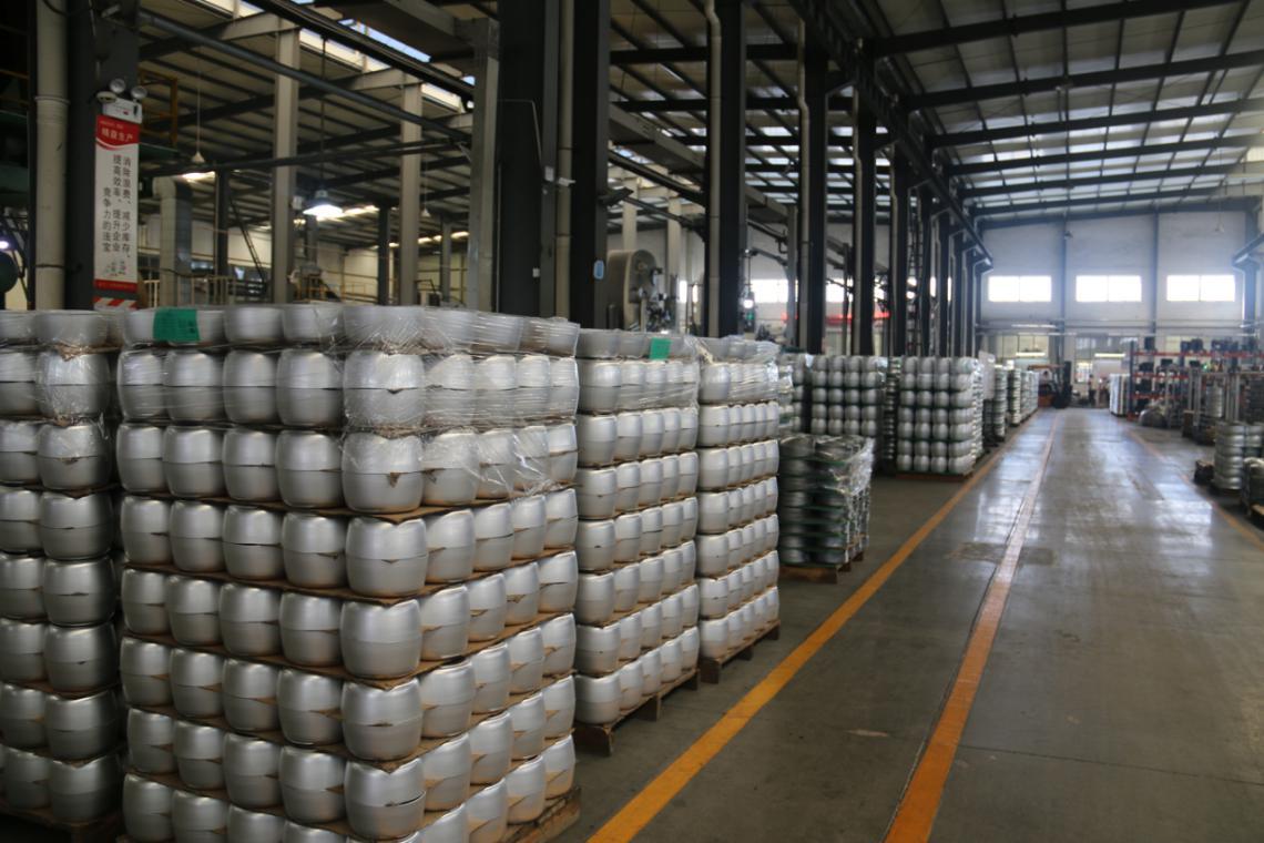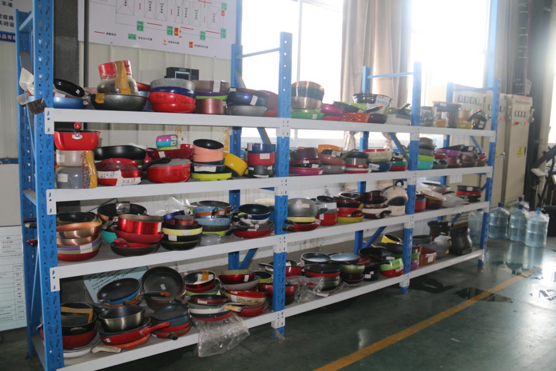 车间生产的各式各样的锅具
