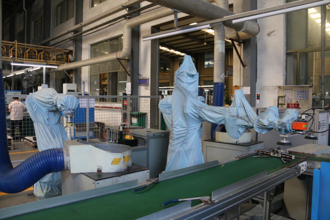三和车间工作人员告诉小编,这些自动线化线帮车间节省了不少员工,替换下来的工人经过培训变成机器人操作人员,提高工厂人员素质,降低了用工风险和成本,后期还会继续加大在机器人自动化方面的投入。