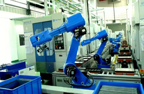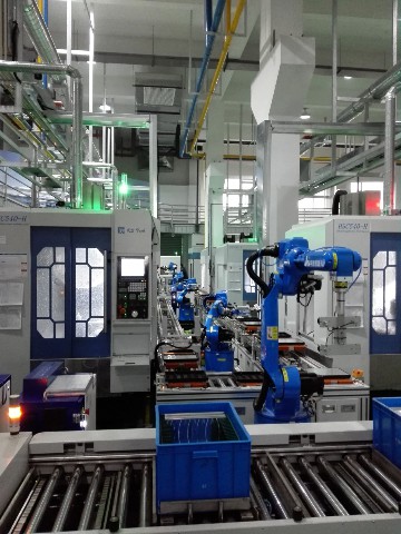 批量配置华中8型数控系统的高速钻攻中心和华数机器人