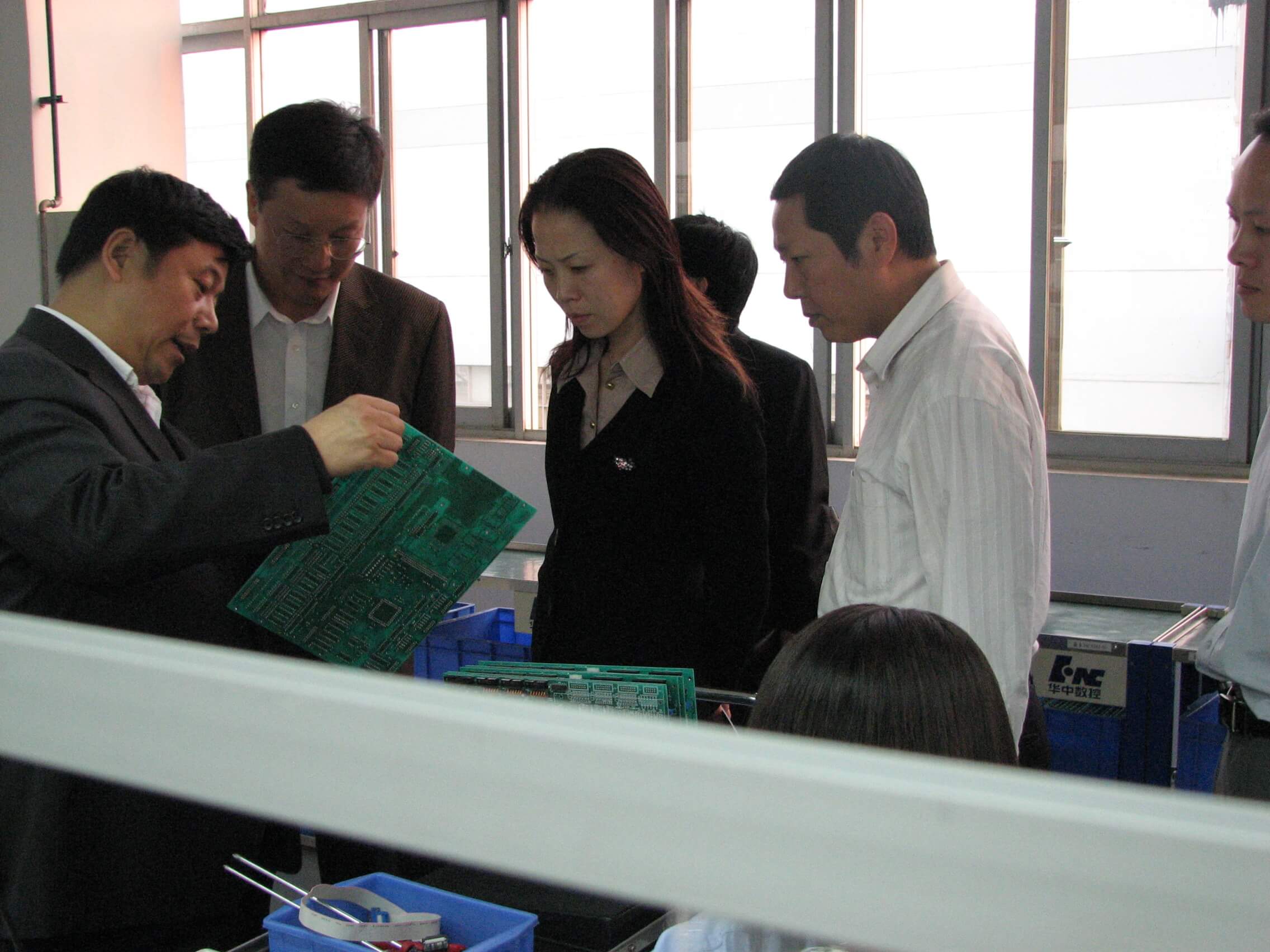 公司董事长陈吉红、总经理徐克农、公司办公室主任伍衡分别向王建鸣主任一行介绍了公司的近况,并带领各级领导参观了华中数控的质量检测车间、产品装配线、机电联调车间。了解了华中数控近来取得的成绩,王建鸣表示了肯定,并鼓励公司抓住机遇,赢得更多的辉煌。