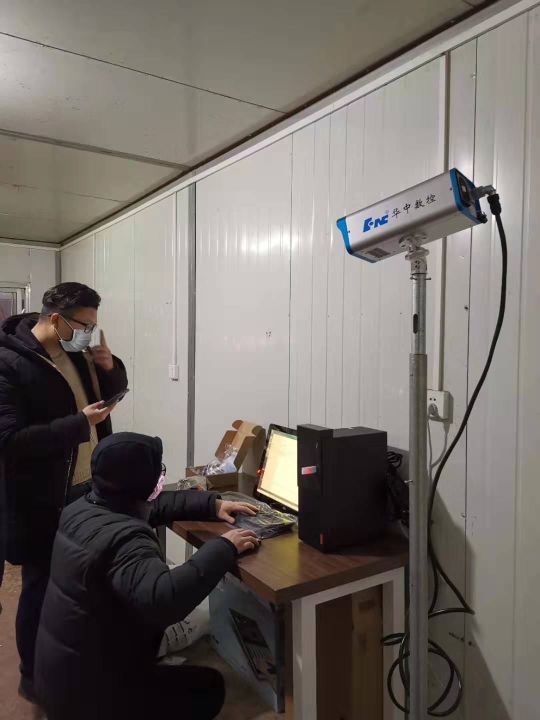 1月27日,正月初四下午,华中数控数控系统事业部副总经理岳应超和3位工程师紧急出发赶往雷神山医院,负责“红外热成像智能体温检测系统”安装调试。赶到雷神山医院后,设备安装调试工作一直持续到晚上十一点。1月28日早上,岳应超等人继续开展红外设备操作方法等现场指导工作,设备投入正式使用。
