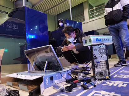 2月27日,华中数控接到海关总署要求在北京西客站加装“红外热成像智能人体测温系统”的通知,火速派出工程师崔晓龙、邱志新和吴硕等赶赴现场。团队成员热情高涨,戴上口罩,脱掉厚重的棉衣轻装上阵,聚精会神的盯着控制屏幕,争分夺秒安装调试“红外热成像智能体温检测系统”,满足国际列车旅客出入境疫情防控需求。