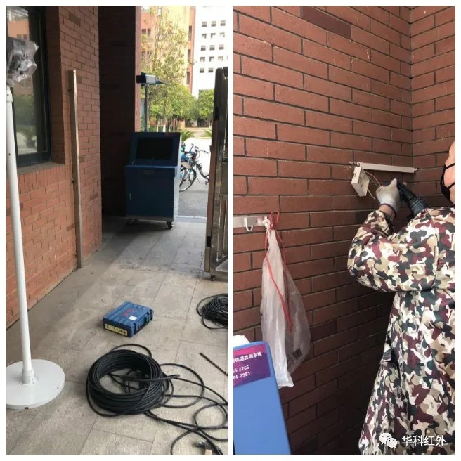 本次设备安装均由华中数控两位工程师熊焰、方天完成,分别安装在学校西大门两侧,经过工程师的精心调试,设备正式上岗,这些设备可在1秒内检测出经过人员的人体温度 ,自动追踪体温异常者并报警,届时学校值班教师在电脑前即可立即对体温异常的师生进行个别二次检测排查,立即启动预案采取就地管控措施。