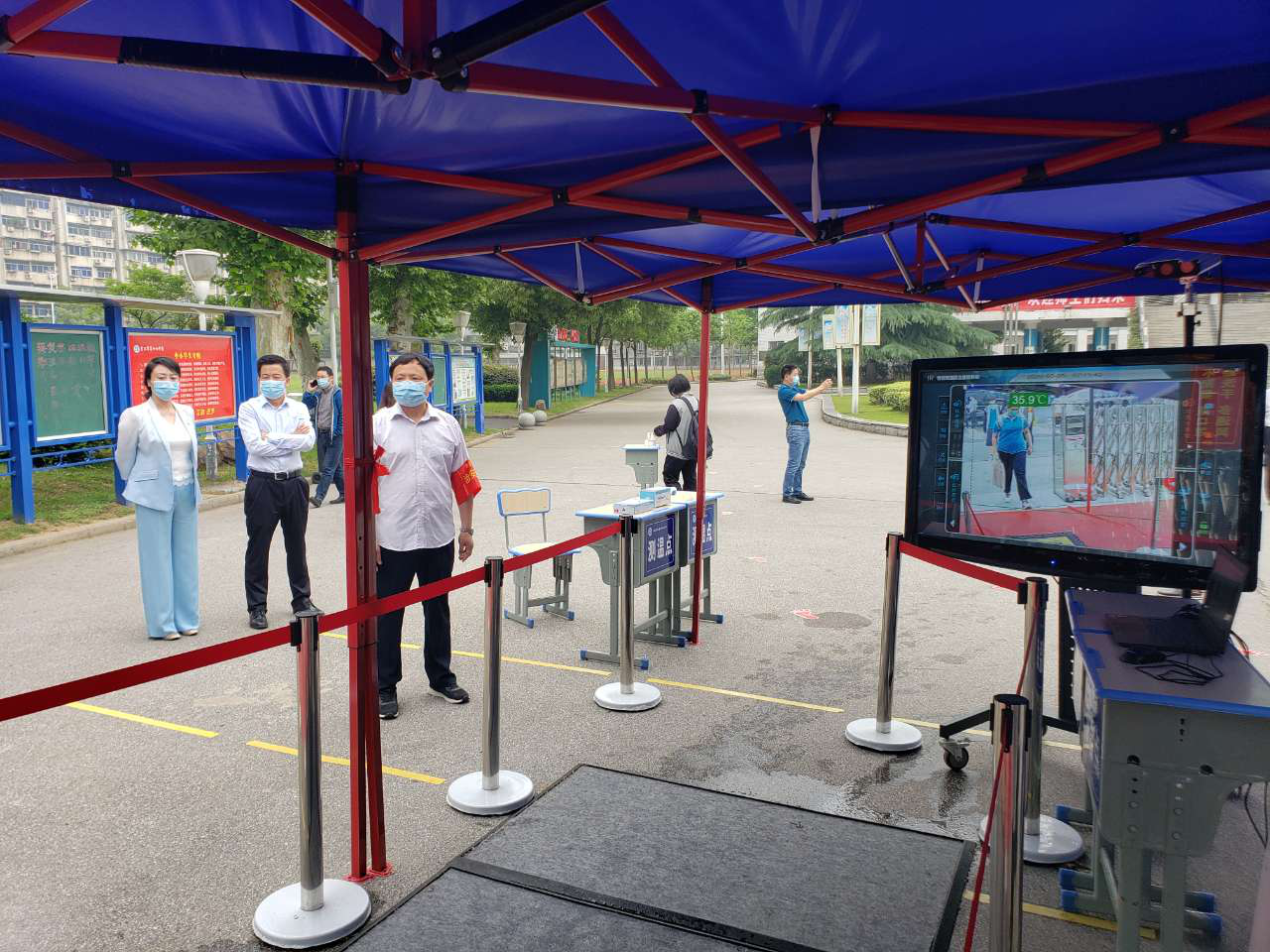 华中数控以对学生、对家长、对社会高度负责的态度,协助武汉市做好复学准备工作,发挥科技力量落实落细疫情防控措施。武汉市许多学校纷纷引进华中数控人体测温“黑科技“——红外智能体温检测系统,硚口区近百所学校率先安装一百多台华中数控红外设备用于复学防控。新洲区也用华中数控红外测温仪建立“防控墙”。