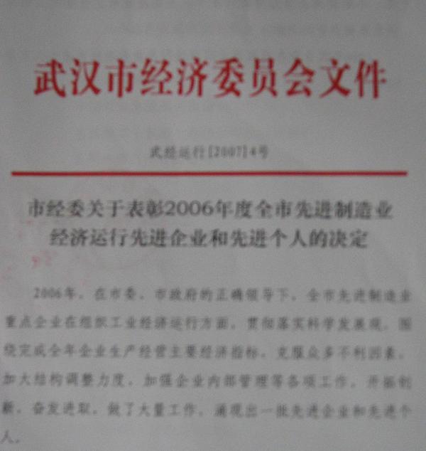 近日,武汉市经委发文,授与华中数控“武汉市二OO六年度工业经济运行先进企业”。