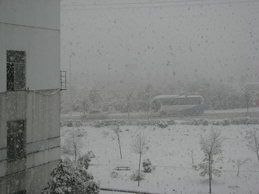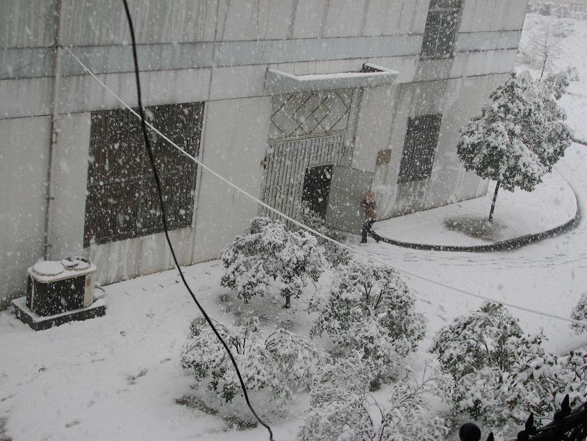 公司周围的树被大雪压弯了腰,大雪还在继续下,门外已经没人了
