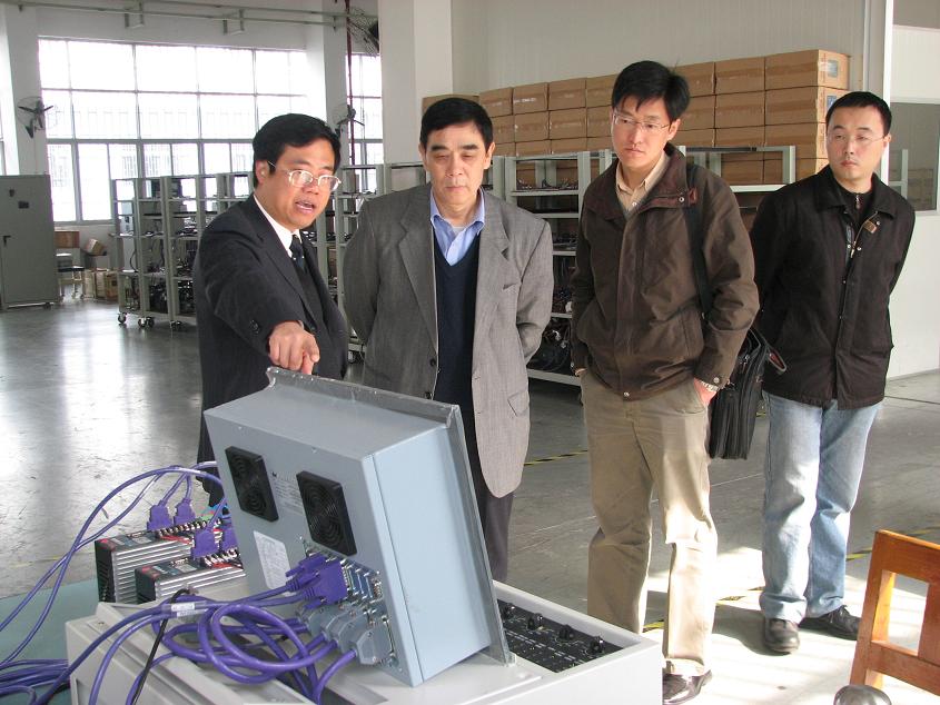 陈吉红董事长向于成廷理事长汇报了华中数控近一阶段来取得的成果和进步,以及华中数控未来的努力方向,于成廷理事长对华中数控的未来充满了信心。图为于理事长参观华中数控。